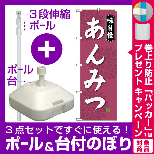 【プレゼント付】【3点セット】のぼりポール(竿)と立て台(16L)付ですぐに使えるのぼり旗 味自慢 あんみつ (SNB-4084)